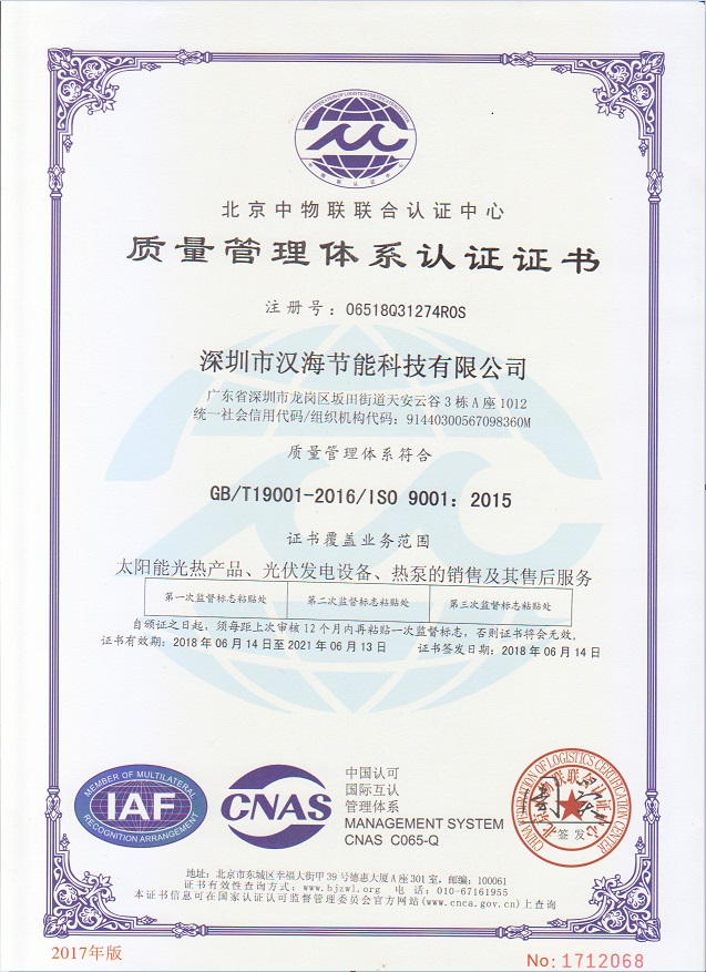 深圳市漢海節(jié)能科技有限公司成立于2011年,注冊資金6000萬元,總部設在深圳,是一家集設計、研發(fā)、施工于一體的專業化從事太陽能中央熱水工程、熱泵中央熱水工程、中央空調、光伏發(fā)電、水處理等新能源及節(jié)能環(huán)保行業的綜合服務商和工程商。在將近10年的發(fā)展歷程中,始終走在行業發(fā)展的前沿,是專業從事太陽能光熱、光伏,空氣源、太陽能熱水工程、水源熱泵,中央空調,水處理產品的設計、安裝、售后服務為一體的高新技術企業;是專業提供太陽能中央熱水工程、熱泵中央熱水工程、中央空調工程、光伏發(fā)電工程、水處理工程、太陽能熱水工程等全面解決方案的供應商和工程商,產品涵蓋太陽能集熱器、空氣源熱泵、水源熱泵、中央空調、光伏組件、太陽能熱水工程等,是新能源的倡導者和推動者。公司成立以來,始終秉承“誠信、責任、專業、高效”的服務宗旨,以市場需求為導向,以為客戶創造價值為己任的精神,不斷開拓創新,通過多年的快速發(fā)展,公司綜合實力躍居行業前列。漢海擁有一支經驗豐富、善打硬仗的專業高效團隊;擁有一批專業的高級工程師、中級工程師、二級建造師、造價工程師、電氣設計師、給排水設計師;擁有一批機電、安防、水、電等專業技術施工和售后人員,配備先進齊全,實力雄厚,技術領先。漢海以質量樹信譽、以工藝立標桿、以管理創效益、以服務得人心,工藝水平在業界獨樹一幟,成為行業模仿的典范。漢海承建的機電工程(設計、施工)涉及星級酒店、賓館、高檔辦公樓、花園別墅、住宅小區、學校、水療中心、工廠等各種類型的工程,工程項目遍布全國各地。漢海將致力于成為全球信賴的新能源綜合服務商,為客戶提供新能源的全方位解決方案。未來,漢海將依托國家政策,積極開拓粵港澳大灣區、中國特色社會主義先行示范區市場及“一帶一路”沿線國際市場,推動新能源的新輝煌。